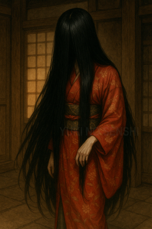 A Shichi-jo (Kyōto), un giovane entrò di notte nel cimitero per mettere alla prova il suo coraggio. Dall'oscurità un vecchio cieco si avvicinò al giovane. Quando la figura anziana si avvicinò abbastanza da essere vista in dettaglio, il giovane vide che aveva gli occhi sui palmi delle sue mani, ed iniziò a sappare inseguito ferocemente. Il giovane corse più veloce che poté verso un tempio vicino e implorò il sacerdote per avere asilo. Il prete nascose l'uomo all'interno di una lunga cassapanca e chiuse a chiave il coperchio. Poco dopo il mostro entrò nel tempio annusando rumorosamente come se stesse cacciando. Il giovane ascoltava il rumore del suo annusare avvicinarsi sempre di più, finché non si fermò proprio accanto al baule in cui si era nascosto. Poi, ci fu uno strano suono di risucchio, come il suono di un cane che succhia le ossa di un animale. Poco dopo, i suoni inquietanti svanirono e tutto tacque. Il prete aprì la cassa per far uscire il giovane, ma tutto ciò che c'era dentro era la pelle flaccida e vuota del giovane. Le sue ossa erano state completamente risucchiate dal suo corpo.