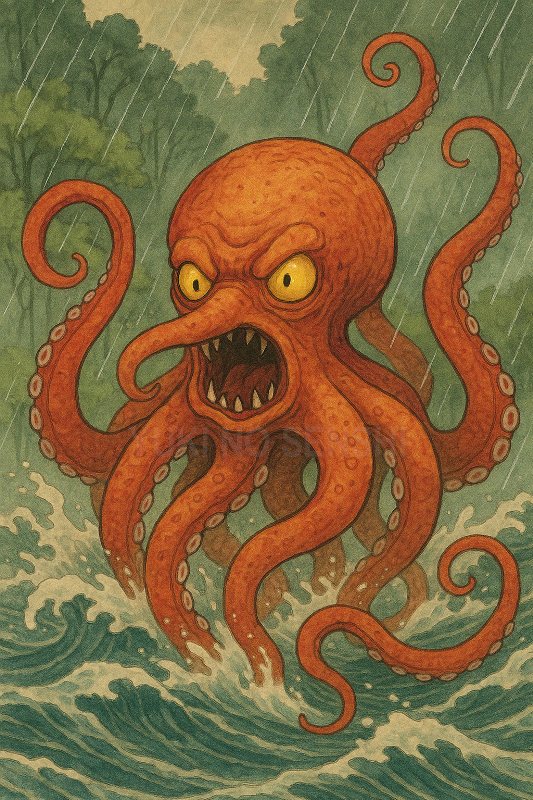 In questa forma un koromodako può inghiottire quasi tutto nell'acqua, anche intere navi. Avvolge le braccia e il mantello attorno alla nave, ai marinai e a tutto il resto, e li trascina negli abissi per non essere mai più visti. Dopo essersi nutrito il koromodako si riduce alle sue minuscole dimensioni, impossibili poi da rintracciare.